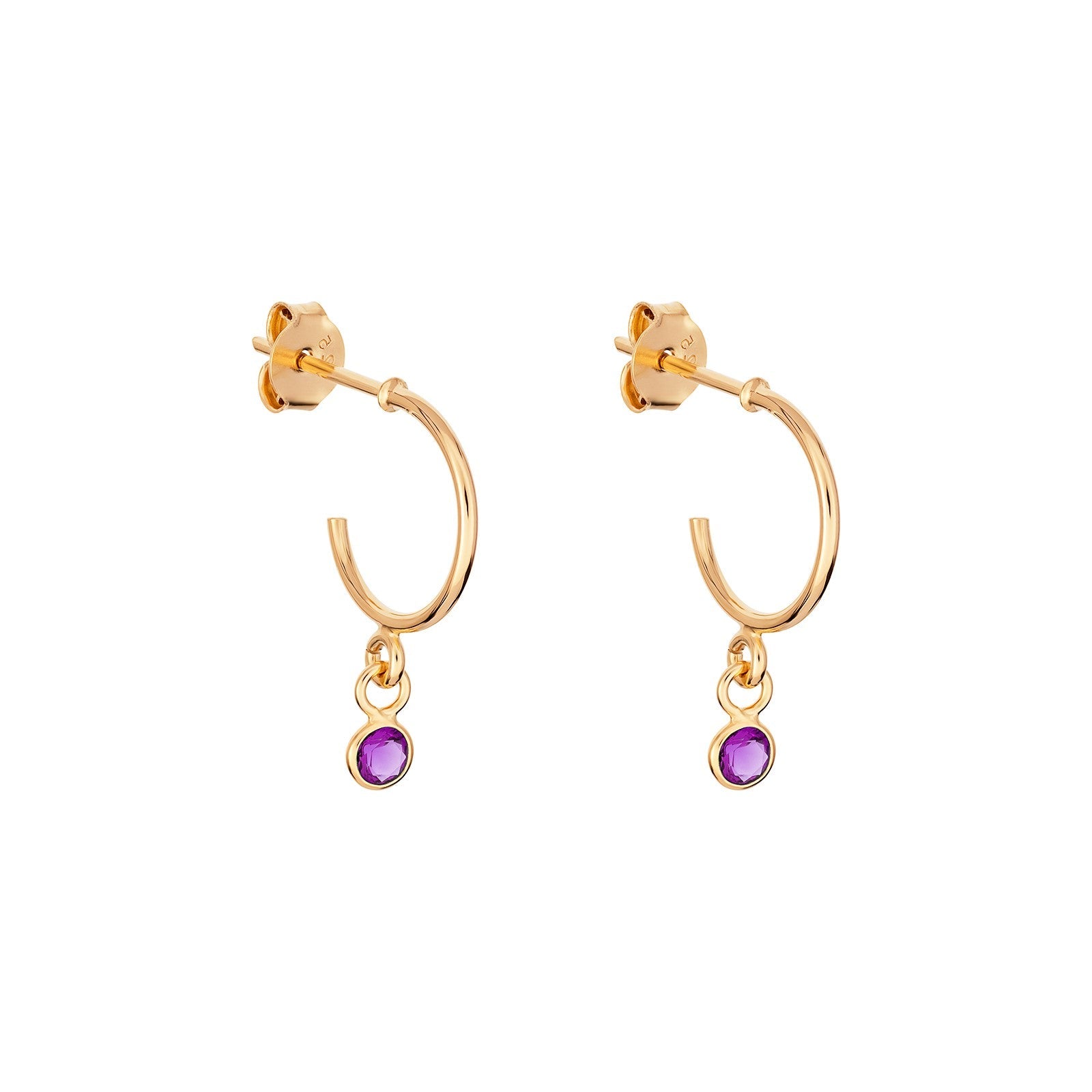 Mark February birthdays with these elegant February Birthstone Hoop Earrings. Beautifully crafted from 18ct gold plated 925 sterling silver, each hoop is adorned with rich purple amethyst coloured cubic zirconia, symbolising peace, balance and inner strength.