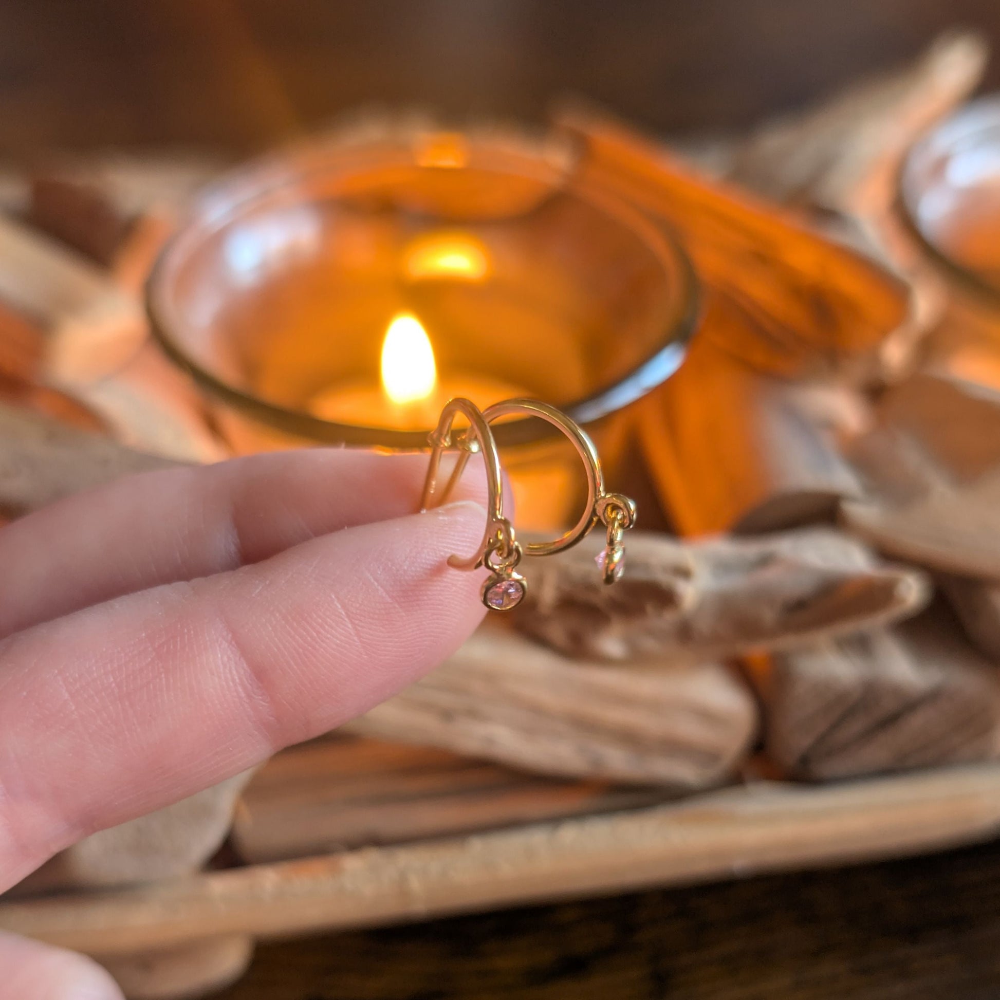 Add a soft pop of colour to your jewellery collection with these October Birthstone Hoop Earrings. Crafted in 18ct gold plated 925 sterling silver, these delicate hoops feature pink tourmaline coloured cubic zirconia stones, symbolising love and compassion.