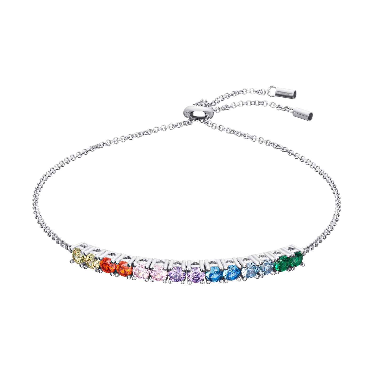 Add a touch of radiant charm to your wrist with our Rainbow Bolo Bracelet, crafted from 925 sterling silver and set with a vibrant array of multicoloured cubic zirconia stones. Designed to shimmer with every movement, the rainbow stones are arranged in a sleek, elegant line that brings a playful yet refined finish to your look.