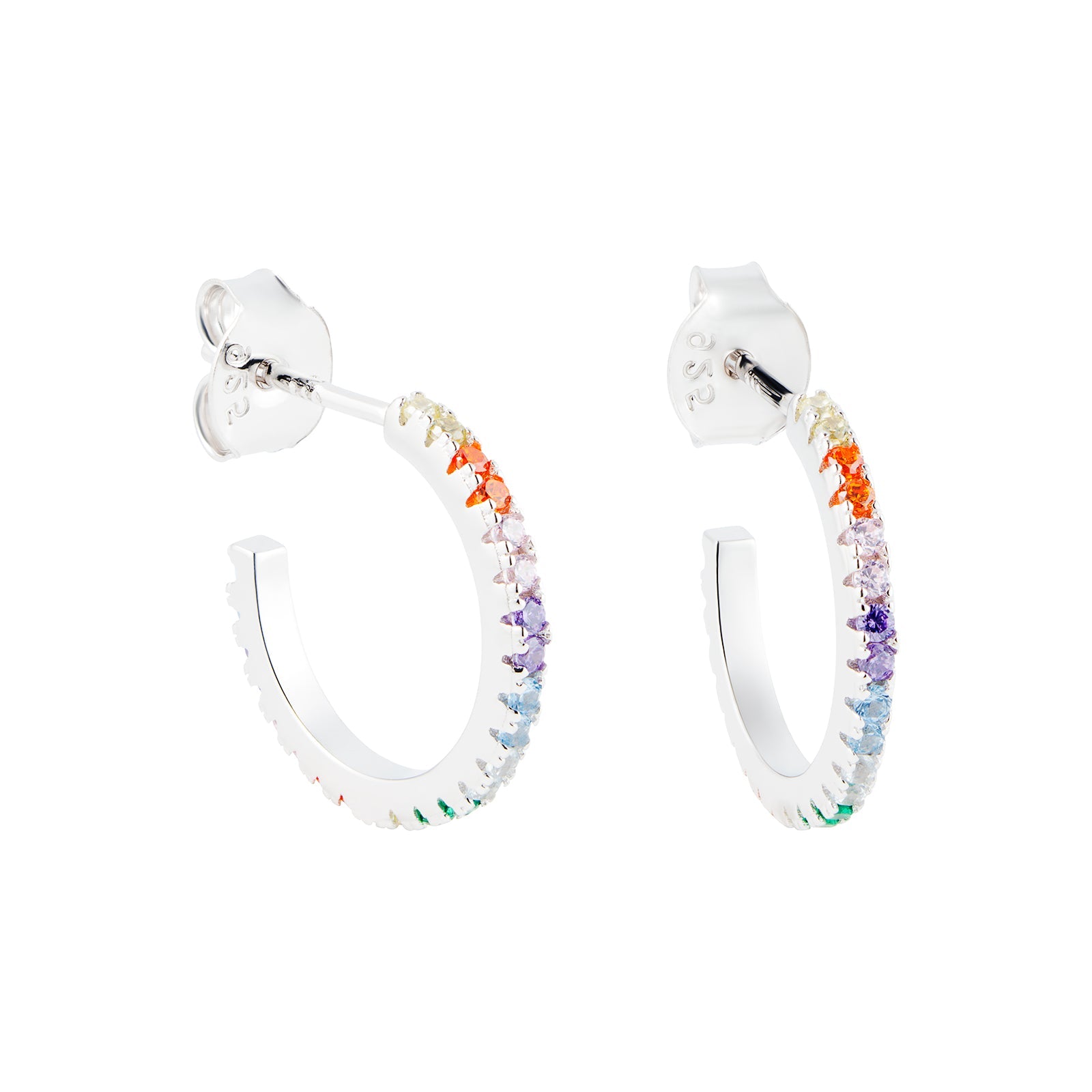 Add a pop of colour to your look with these stunning 14mm Rainbow Hoop Earrings, made from premium 925 sterling silver for lasting shine and durability. Each hoop is lined with a vibrant spectrum of coloured cubic zirconia stones, precision-set to create a dazzling rainbow gradient that catches the light beautifully from every angle.