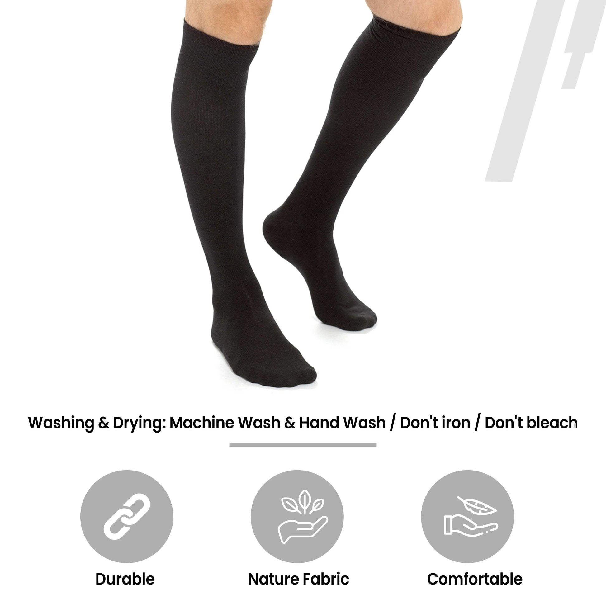 Discover unmatched comfort and enhanced leg support with the 2 Pairs Travel Compression Socks Black Knee High Flight Socks for Circulation Swelling & Leg Support by Sock Stack. Perfectly crafted for travellers, workers, and anyone seeking relief from leg fatigue, these unisex socks combine style with functionality. Trusted by thousands, they stand apart in the market for their exceptional quality and performance, ensuring your legs stay refreshed whether you're in the skies or on your feet all day.