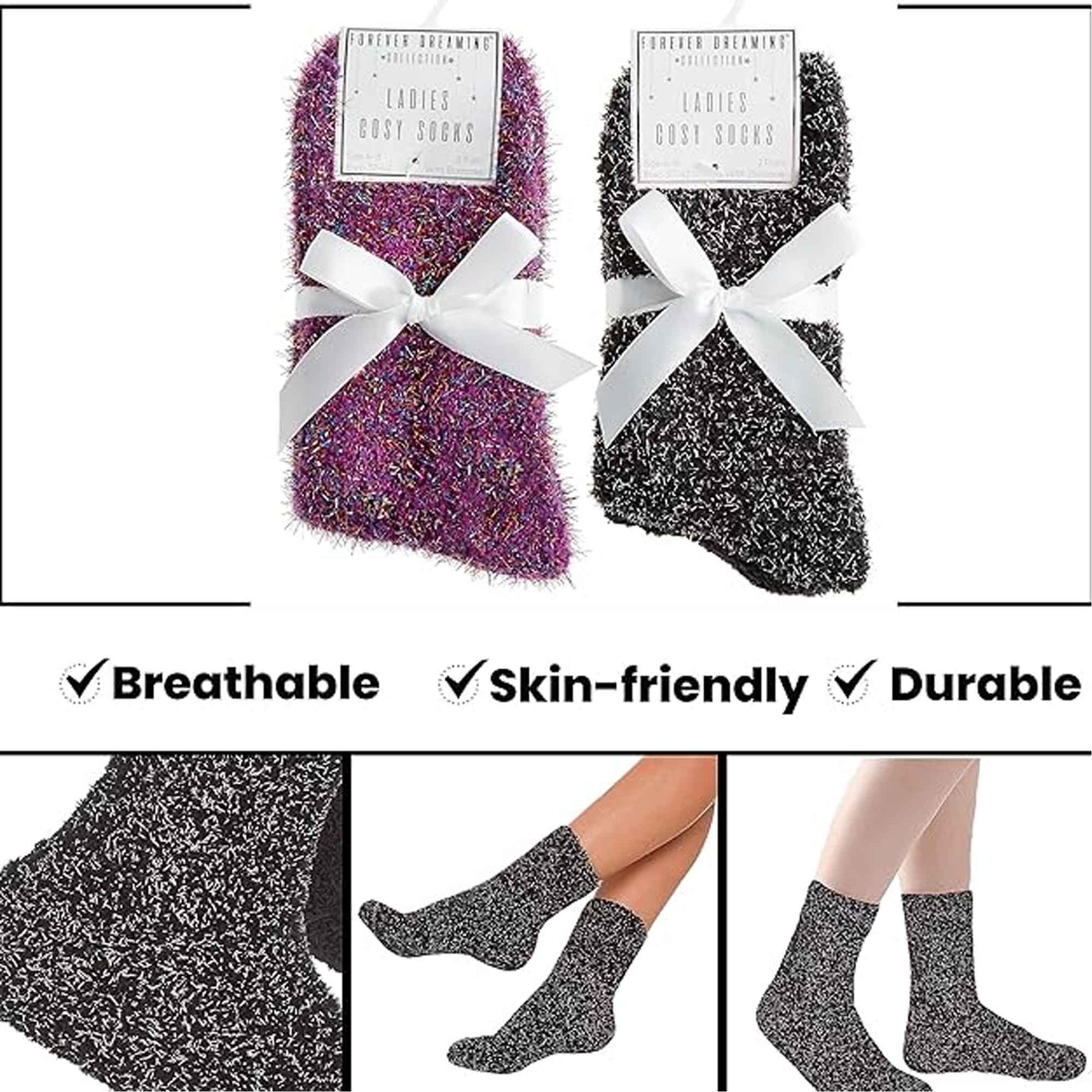 4 Pack Womens Fluffy Cozy Warm Slipper Socks Fuzzy Soft Comfortable Purple Black UK Sizes 4-8 Perfect Winter Gift by Sock Stack