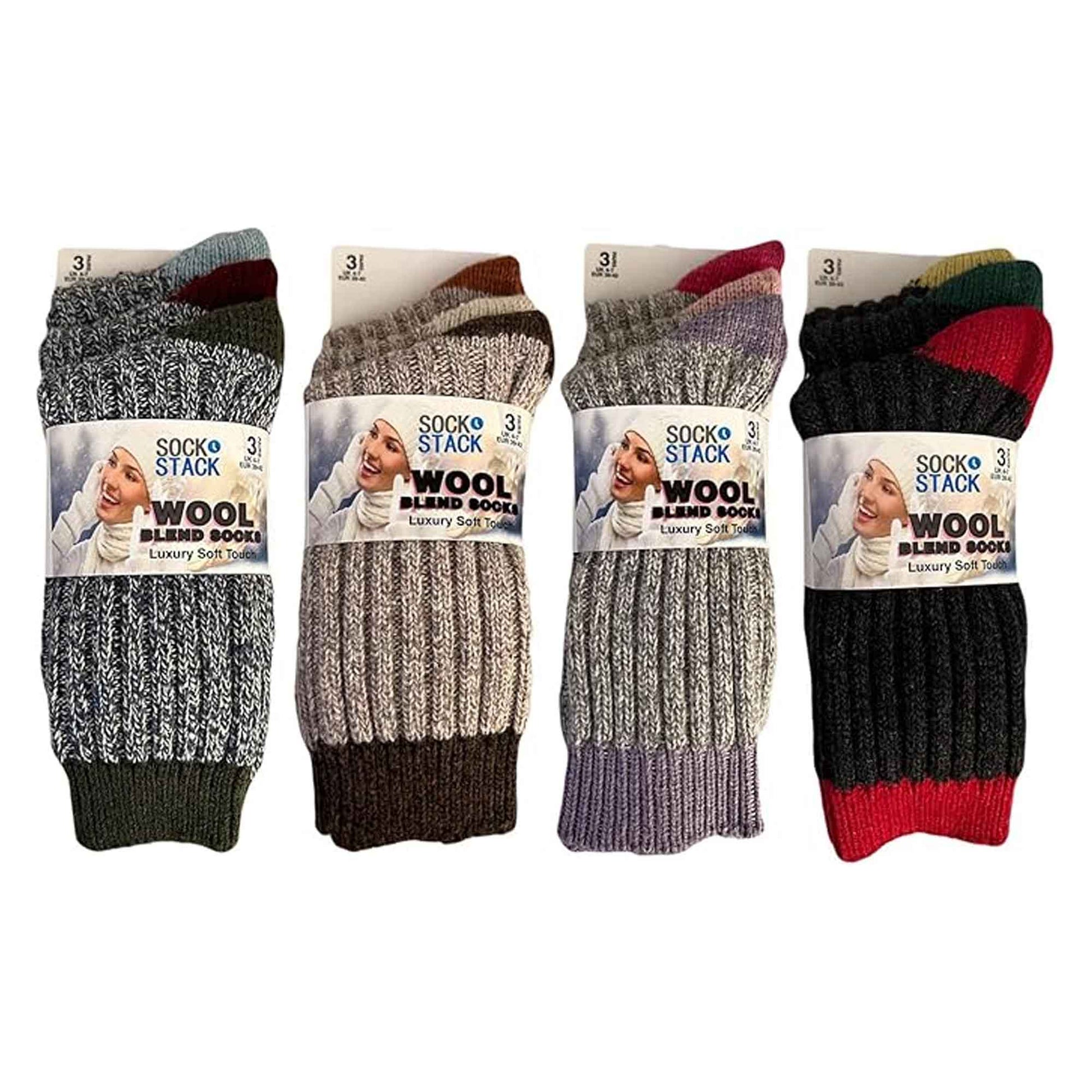 6 Pairs Women's Thick Wool Hiking Socks Cushioned Reinforced Heel Toe Breathable Outdoor Durable Work Boot Socks UK 4-7 by Sock Stack